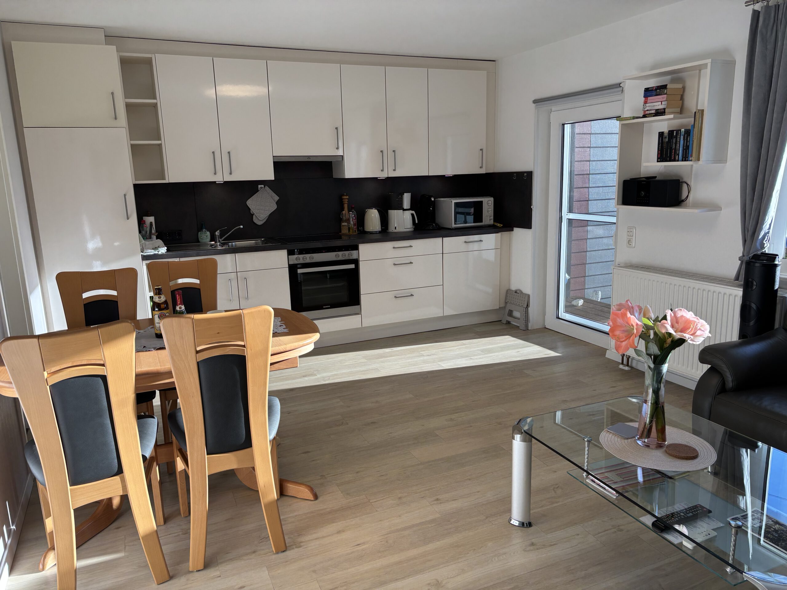 In der Wohn-/Essküche finden Sie neben der Spülmaschine und einem Kühlschrank mit kleinem Gefrierfach auch eine Mikrowelle, eine Filterkaffeemaschine, eine Senseo Kaffeemaschine, einen Wasserkocher, einen Toaster sowie umfangreiche Ausstattung an Geschirr. Zudem ist eine Waschmaschinennutzung möglich.